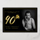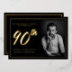 This 90th Birthday Elegant Photo Black and Gold Foil Invitation is perfect for either a man or a woman celebrating their milestone 90th birthday. This invitation with gold foil on the front is easily customisable with all of your event's details, with the person's name on the front, and the date, time, location, and RSVP details on the back.