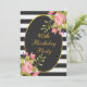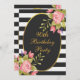 90th Birthday Floral Black White Stripes Gold Foil Invitation