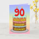 90th Birthday — Fun Cake & Candles, w/ Custom Name Card