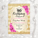 90th Birthday - Gold Stripes Pink Roses Invitation
