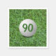 Number 90 on white golf ball on green grass for golfer's birthday party.