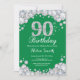 90th Birthday Green and Silver Diamond Invitation