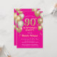 90th Birthday Hot Pink and Gold Glitter Balloons Invitation