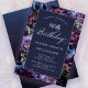 Moody purple flowers create a lush border on this 90th birthday party invitation. Pops of dusty blue and ivory white add to the floral display. A dark background adds to the mood and makes the white text pop. Traditional calligraphy script gives it an elegant vibe. Except for the word birthday, all of the text is editable. You can choose to order on paper or download a digital version. This item is part of the Moody Purple Floral collection. It contains templates you can use to create unique invitations suites, as well as templates for welcome signs, party supplies and decorations.