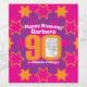 Bright pink and yellow 90th birthday add your own photo wine labels. Add your own ninetieth birthday photo to the 0 of 90 and customise with the birthday message / name of your choice. Currently reads Happy Birthday Barbara 90 a classic vintage. A great way to customise your alcoholic birthday gifts. Unique design by Sarah Trett. www.sarahtrett.com
