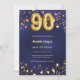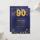 90th birthday navy blue gold stars invitation
