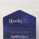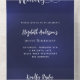 A navy blue background. The blue colour is uneven. Personalise and add name, party details, RSVP date, return address and name. Ninety with a heart.