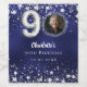 90th Birthday Navy Blue & Silver Stars Custom Photo Wine Label
