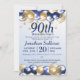 90th Birthday Navy Gold Balloons Party Invitation