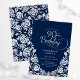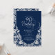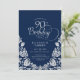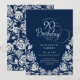 Navy silver elegant 90th birthday party invitation. Classy design featuring roses, faux silver foil and typography script font. Trendy invite card perfect for a stylish female bday celebration. Personalise with your own details. Can be customised to any age. Printed Zazzle invitations or instant download digital printable template.