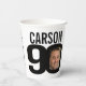 Fun mono black and white 90th Birthday party two photos and custom name party cups. A great idea for adding some fun to a ninetieth birthday party. Other matching items are available. Design by Sarah Trett for www.mylittleeden.com on Zazzle.