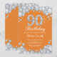 90th Birthday Invitation. Orange and Silver Rhinestone Diamond. Elegant Birthday Bash invite. Adult Birthday. Women Birthday. Men Birthday. For further customisation, please click the "Customise it" button and use our design tool to modify this template.