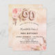 A rose gold, blush pink rustic faux metallic looking background. Decorated with rose gold and pink florals, roses, pampas grass. Personalise and add a name and party details. Number 90 is written with a balloon style font.