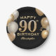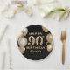 90th Birthday Party Black and Gold Balloons Paper Plate