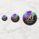 90th Birthday Party Black and Gold Colourful Balloons and Confetti. For further customisation, please click the "Customise it" button and use our design tool to modify this template.