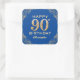 90th Birthday Party Blue and Gold Glitter Frame Square Sticker