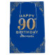 90th Birthday Party Blue and Gold Glitter Medium Gift Bag