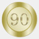 90th Birthday Party Sticker on a golden background.