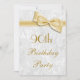 Womens' elegant 90th Birthday Party invitations. Woman's ninetieth / ninety years old birthday party invites. Beautiful white damask pattern background with a pretty, stylish gold bow and ribbon image. These glamourous, chic, classy invites are beautifully sophisticated and are decorated / printed on both sides. PLEASE NOTE: All invites on Zazzle have flat printed images. Bow and ribbon images purchased from digital-designs-by-elena. If you need any assistance customising your invitation please contact me through my store and I will be happy to help.
