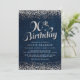 A 90th birthday is definitely a time for celebration. These chic denim & diamonds birthday party invitations feature the words “90th Birthday” in a fun script typeface with little confetti gems at the top and bottom on a denim background. Design by The Spotted Olive™.