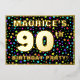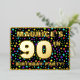 The front of this exciting and joyful ninetieth birthday celebration/party foil invitation card design features a custom name, a large number “90th”, the message “BIRTHDAY PARTY!”, and a border. The background of the front has an upbeat, colourful star shapes pattern. The back features personalised details about the event, such as the date, time, venue, and any other information that may be useful. Customised invitations like these might be a fun way to invite guests/attendees to a birthday gathering being held to celebrate somebody’s 90th birthday. [~Z0000600]