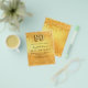 A modern, stylish and glamourous invitation for a 90th birthday party. A faux gold looking background with faux glitter drips, paint dripping look. The name is written with a modern hand lettered style script. Personalise and add your party details. Number 90 is written with a balloon style font, script.