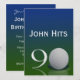 Know a golfer who is turning 90? Here's a fun golf ball template that reads "John hits 90" with a golf ball design. Colourful blue and green background make the golf ball pop out. Easily edit template fields with your own details.