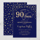 90th Birthday Party Invitation - Gold Navy Blue
