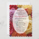 This roses for a 90th birthday party invitation is just beautiful. The design features a multi colour bouquet of roses in the background with a sheer looking white oval in the centre for all you party details. This elegant design is sure to please as the roses not only appear on the front, but also on the back and the invite has beautiful scalloped edges. Copyright henishouseofpaper