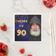 A napkin for guys 90th birthday party. Template for your photo. Dark blue background and the tex: Cheers to 90. The text is written with a trendy faux gold balloon script. The dark blue colour is uneven. With golden confetti as decor.