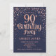 90th Birthday Party - Navy & Rose Gold Invitation