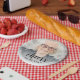 These custom 90th birthday paper plates feature the guest of honour's photo and birthday, along with the word "Cheers" in elegant black calligraphy script. A white screen helps make the text pop. A great way to celebrate someone who's turning ninety!