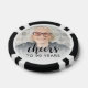 These custom 90th birthday poker chips feature the guest of honour's photo, along with the word "Cheers" in elegant black calligraphy script. A white screen helps make the text pop. A great way to celebrate someone who's turning ninety!