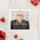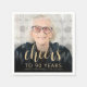 This custom 90th birthday napkin features the guest of honour's personalised photo, name, and birthday, along with the word "Cheers" in elegant gold-coloured calligraphy script. A dark screen helps make the text pop. A great way to celebrate someone who's turning ninety!
