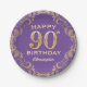90th Birthday Party Purple and Gold Glitter Frame Paper Plate