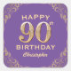 90th Birthday Party Purple and Gold Glitter Frame Square Sticker