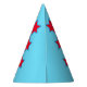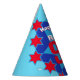 Bright star pattern add your own photo and name ninieth birthday party hats. Ideal for a special 90th birthday party celebration. Colourful red and blue star pattern design. Background colour can also be changed for your own choice currently light blue. Original art and design by Sarah Trett. www.sarahtrett.com for www.mylittleeden.com