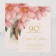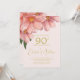 Gold colour font and Pink watercolor florals are the background for this large floral bouquet 90th birthday invitation.