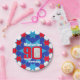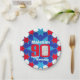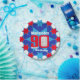Celebrate a 90th Birthday with this fun blue red and white boys star patterned ninetieth birthday photo and name disposable paper plate. Great idea for adding some fun to a 90th birthday party. Reads Happy Birthday Malcolm 90, customise with your own birthday mens photo and choice of name. Ideal to add some fun and a personal touch to a special birthday boys ninety birthday party. Design by Sarah Trett.