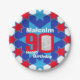 90th birthday photo name blue star paper plate