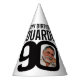 Add your own photo and name party hat. Ideal for a special 90th birthday party celebration. Simple black and white design. Other matching birthday items are available. Original graphic art and design by www.mylittleeden.com