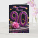 90th Birthday Purple Amethyst Jewels Pink Rose Card
