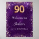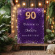 A welcome poster for a girly and glamourous 90th birthday party. A deep purple background decorated with faux sparkles. The purple colour is uneven. Personalise and a name.