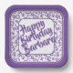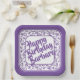 90th Birthday Random Number Pattern Purple White Paper Plate
