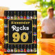 Create the ultimate throwback celebration with this personalized black and gold rock and roll 90th birthday guitar greetings card, featuring bold modern gold typography customized with the your name “Alexander Rocks 90.” Designed with groovy hippie typography and a vibrant retro 60s–70s vibe, this card brings instant rockstar flair to any milestone celebration.