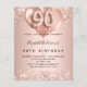 For an elegant 90th birthday. A rose gold faux metallic looking background. Decorated with rose gold, pink faux glitte, sparkles and balloons. Personalise and add a name, and party details. The name is written with a hand lettered style script, number 90 with balloon style fonts.