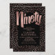 Start the party on paper with this bold, funny adult 90th birthday invitation design. The bold, humourous typography and festive confetti in rose gold on black give this invitation a classy yet humourous vibe. Perfect for the woman who likes to be the centre of the party. Order your printed invitations or download your digital invitations now for a day they'll never forget!