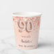 90th birthday rose gold glitter monogram name paper cups