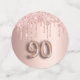 Girly and feminine confetti for a 90th birthday party table setting. A rose gold faux metallic, foil looking background decorated with faux rose gold glitter drips. Personalise and add her name/text. Dark rose gold coloured letters. Some confetti chips with name and date, others with number 90 written with a balloon style fonts, and with the text Happy Birthday.
