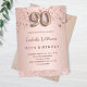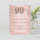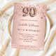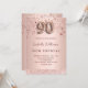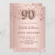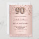 A modern, stylish and glamourous invitation for a 90th birthday party. A rose gold background with rose gold and pink dripping stars . The name is written with a modern dark rose gold coloured hand lettered style script. Personalise and add your party details. Number 90 is written with a balloon style font, script.